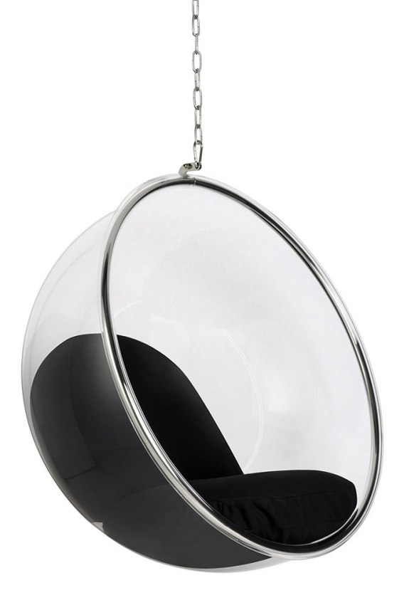 Fotel wiszący BUBBLE poduszka czarna - korpus akryl, poduszka wełna